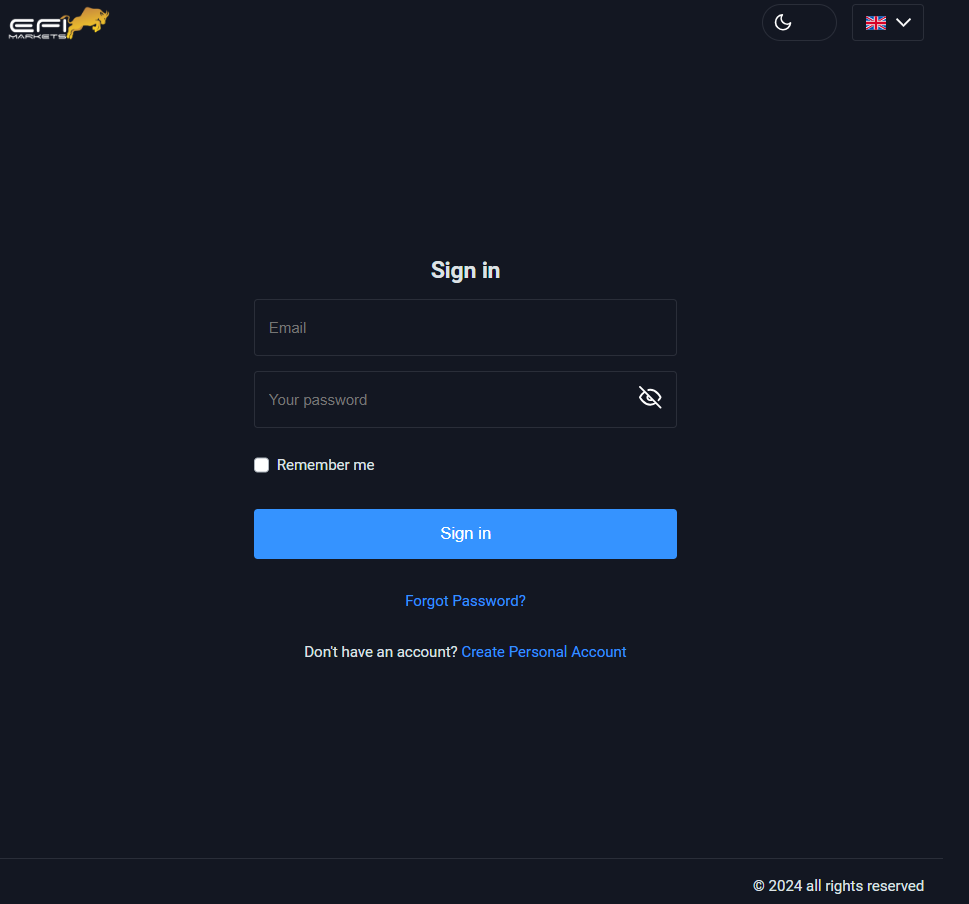 visit the Login page by visiting the website of EFI Market Login page- Enter your registered email in the "Email" field.